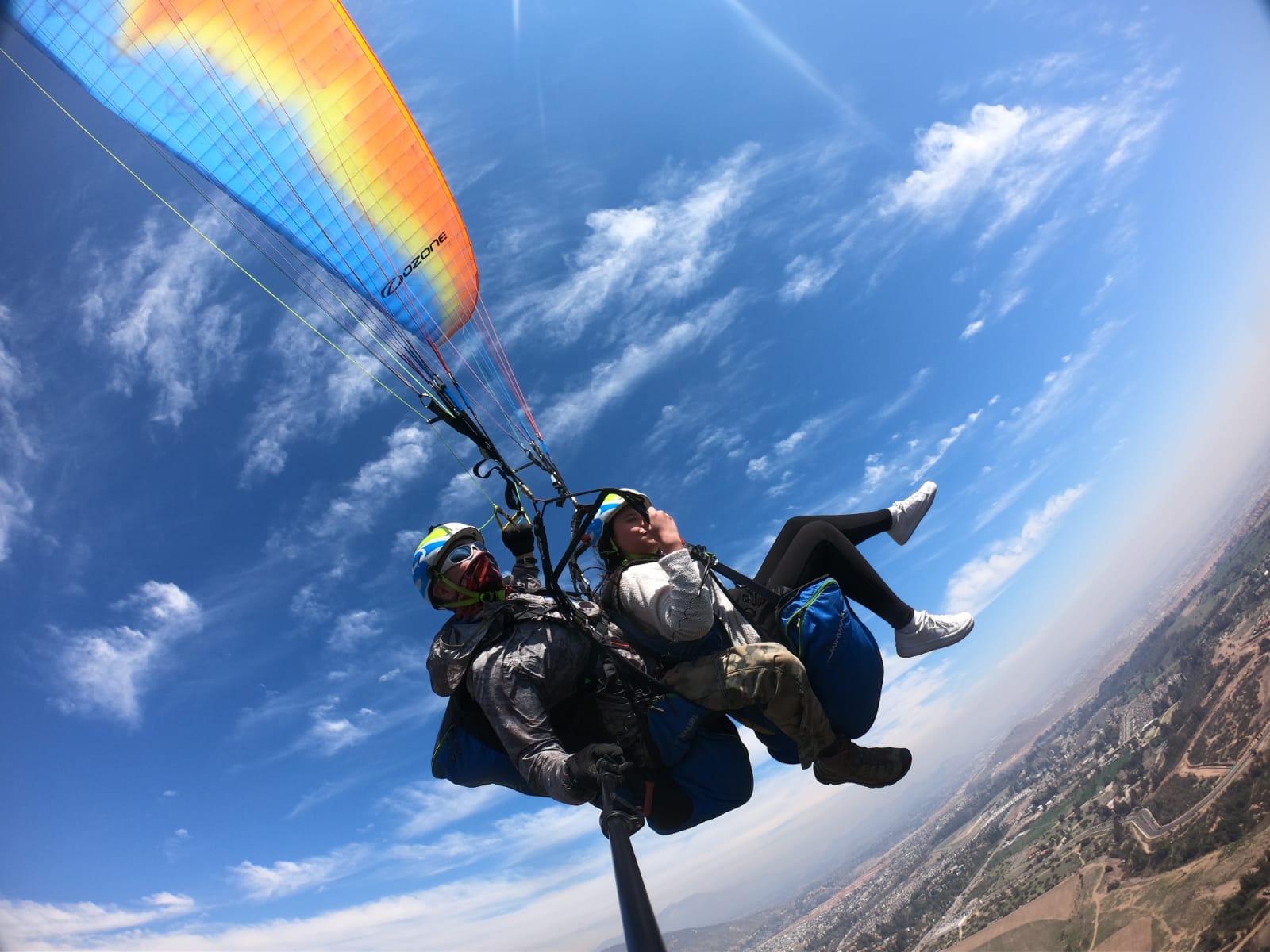 Ven a disfrutar de un vuelo turistico en Parapente junto a pilotos certificados. Vuelo en el cual podrás disfrutar de las maravillosas vistas de todo Santiago, el valle del Cajón del Maipo y obviamente de la majestuosa cordillera de los andes. Con una duración de entre 8 a 20 minutos en el aire, el tiempo varía según la estación del año y condiciones climáticas, hacemos que te deleites y maravilles con postales de Santiago que solo podrás apreciar desde nuestros Parapentes!